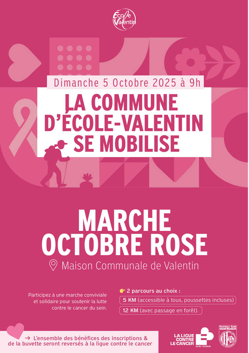 A l'occasion d'Octobre Rose, la commune d'Ecole-Valentin se mobilise et vous invite à venir marcher contre le cancer du sein !