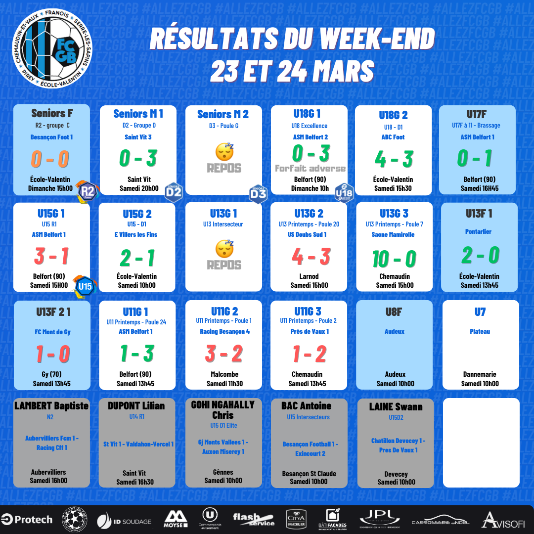 Les U17 F, les Seniors, les U11, les U13 F et les U14 enchaînent![]()